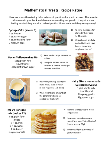 Maths Worksheet Recipe Type Ratio Questions Teaching Resources